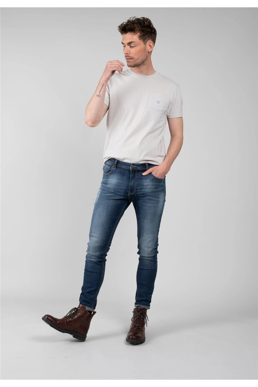 Le jeans skinny est un essentiel à avoir dans sa penderie. Découvrez notre modèle SKENDER, ce jeans skinny bleu est parfait pour un look décontracté, avec sa coupe près du corps et son délavage tendance. Il fera son effet avec un pull ou un sweat oversize par exemple.