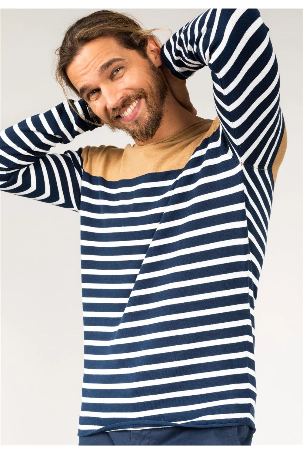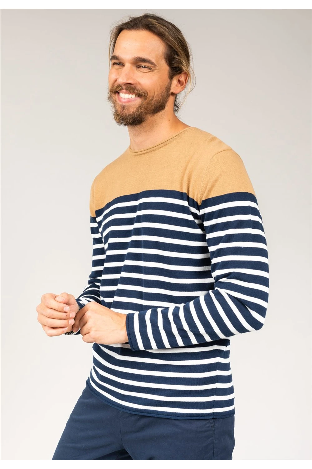 Pull en coton à rayures pour homme MYCONOS, col rond et détails contrastants.