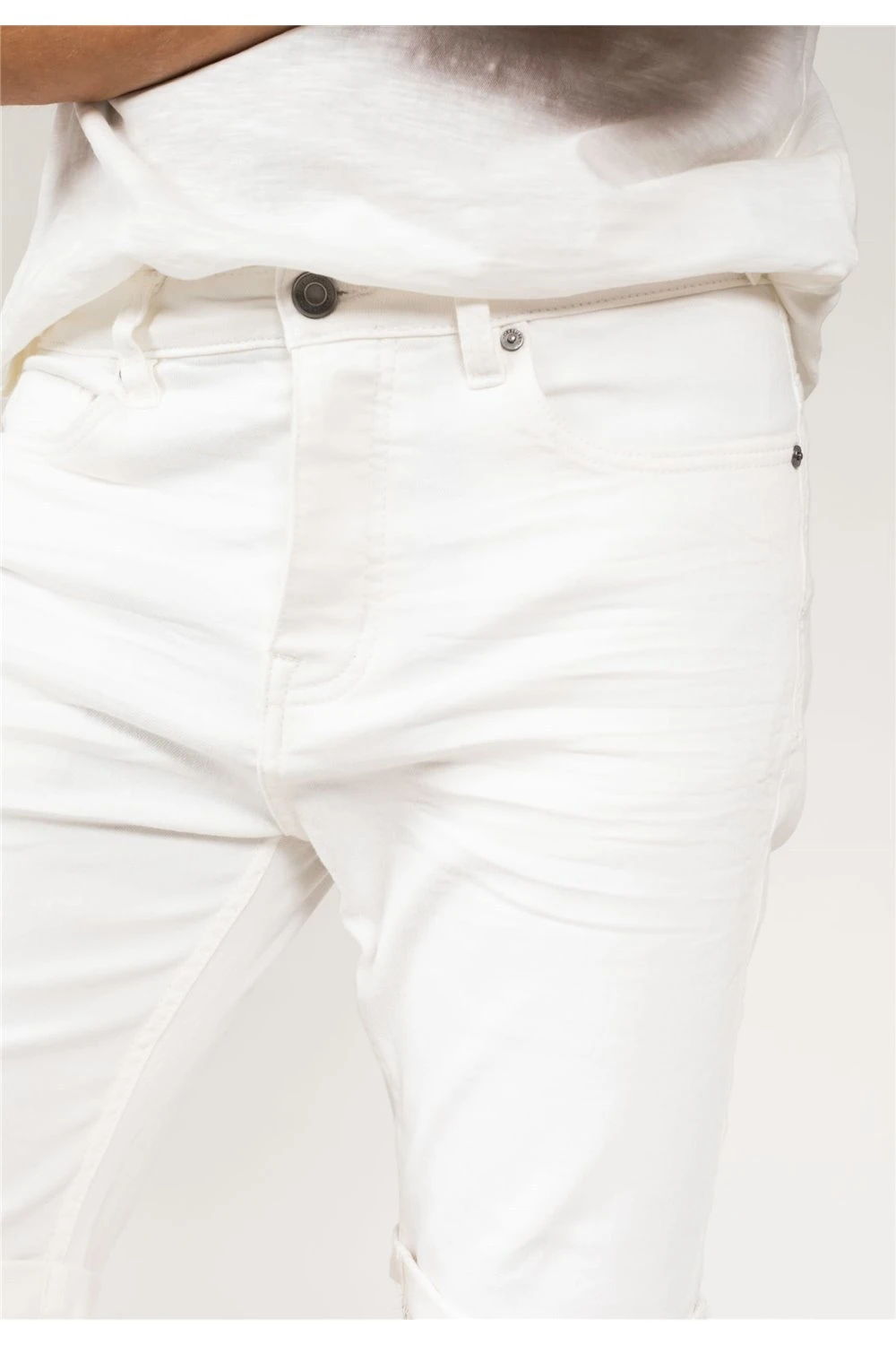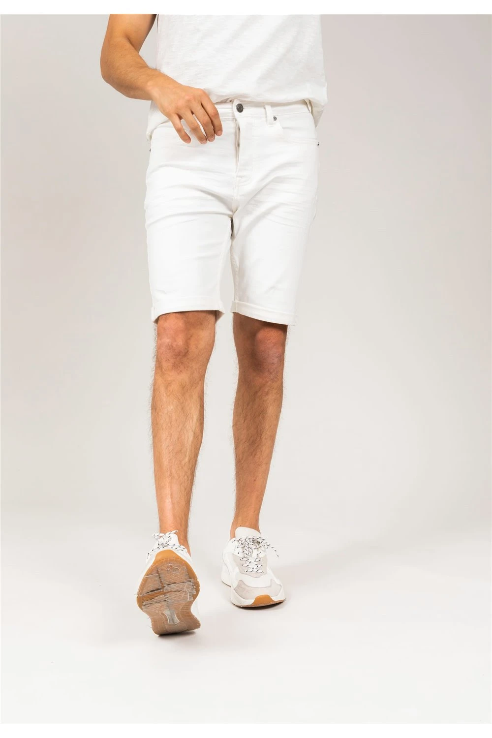 Si vous cherchez une base de nombreux look d’été, voici le short court en jean blanc KURT. Un short court pour homme basique qui vous accompagnera chaque jour d’été. Optez pour des tennis en toile et un joli t-shirt imprimé.