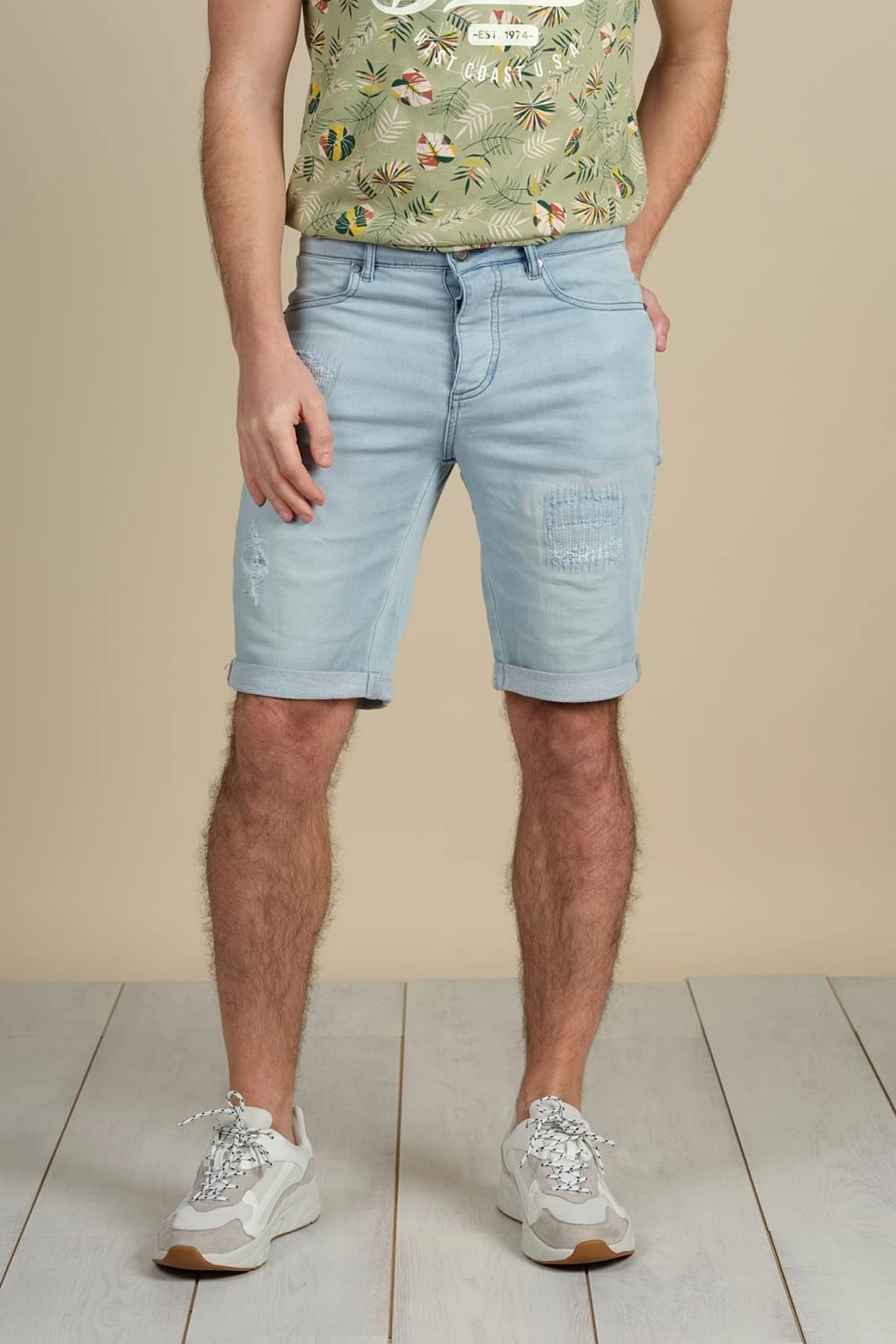 Découvrez le short pour homme BULLET. Ce short vous plaira par sa coupe slim, confort et tendance. Son délavage et ses détails déchirés son parfaits pour un look rock et décontracté.