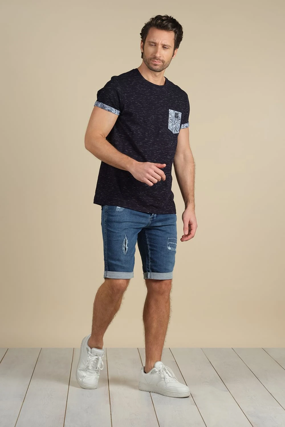 Le t-shirt à manches courtes SHAMAR est un haut à la fois simple et décontracté. Vous apprécierez ses manches retournées ainsi que sa poche plaquée sur la poitrine, qui sont ornées d’un motif floral tropical.