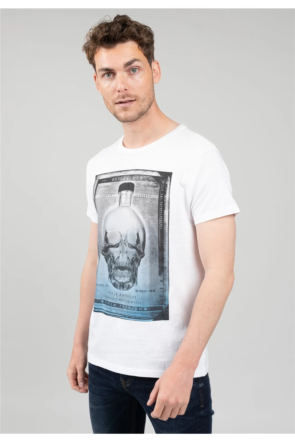 Découvrez le t-shirt pour homme CRYS avec son imprimé inspiration tête de mort. Ce t-shirt coupe droite et col rond se porte facilement avec toutes les coupes de jeans ou de pantalons.