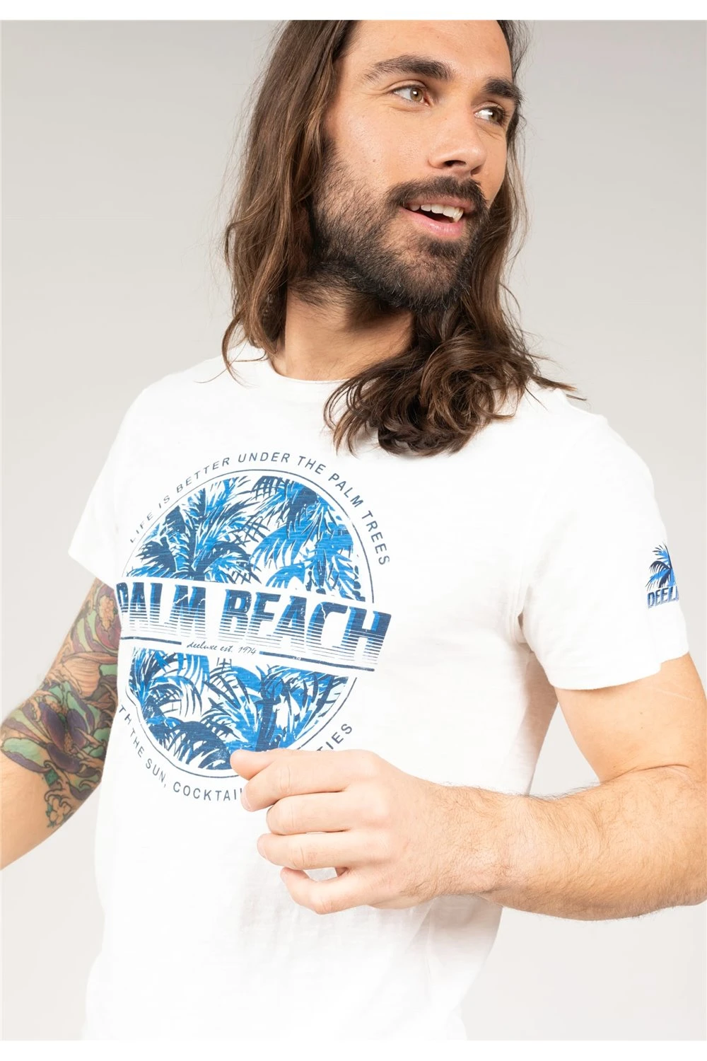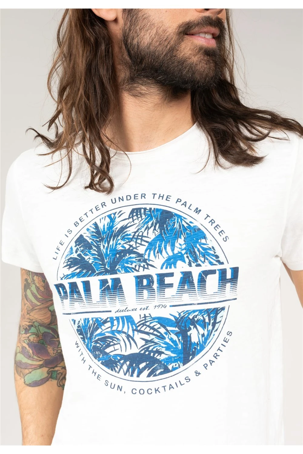 Apportez une touche de fantaise dans votre dressing avec ce tee-shirt au large motif. Un motif très plage, une référence aux vacances à palm beach, parfait pour la saison d’été ! Ce tee-shirt pour homme possède une coupe droite, des manches courtes et un col rond.