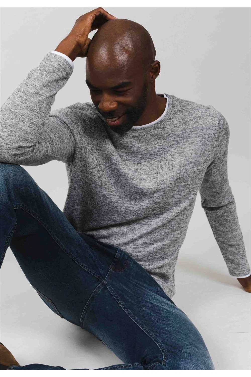 À mi-chemin entre le pull léger et le t-shirt, le modèle MONAN est un haut basique et agréable à porter pour la mi-saison. Son tissu chiné et son effet doublé sur les bordures lui donnent un look casual et décontracté.
