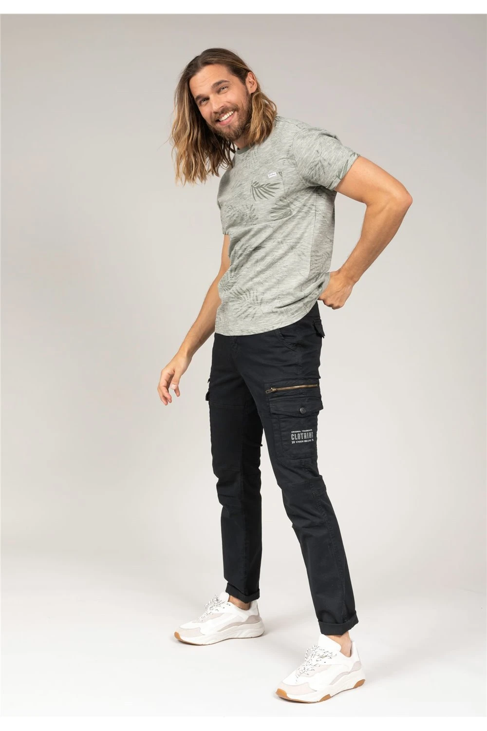 Le t-shirt pour homme NIKI sent bon les vacances et le soleil ! Ce modèle manches courtes pour homme est couvert d’un motif tropical chiné original. Associez-le facilement avec un jeans ou un short en denim.