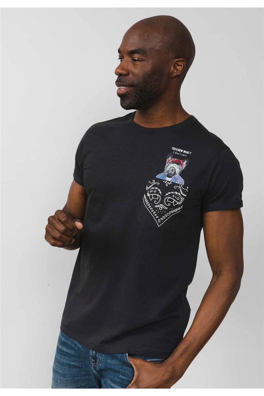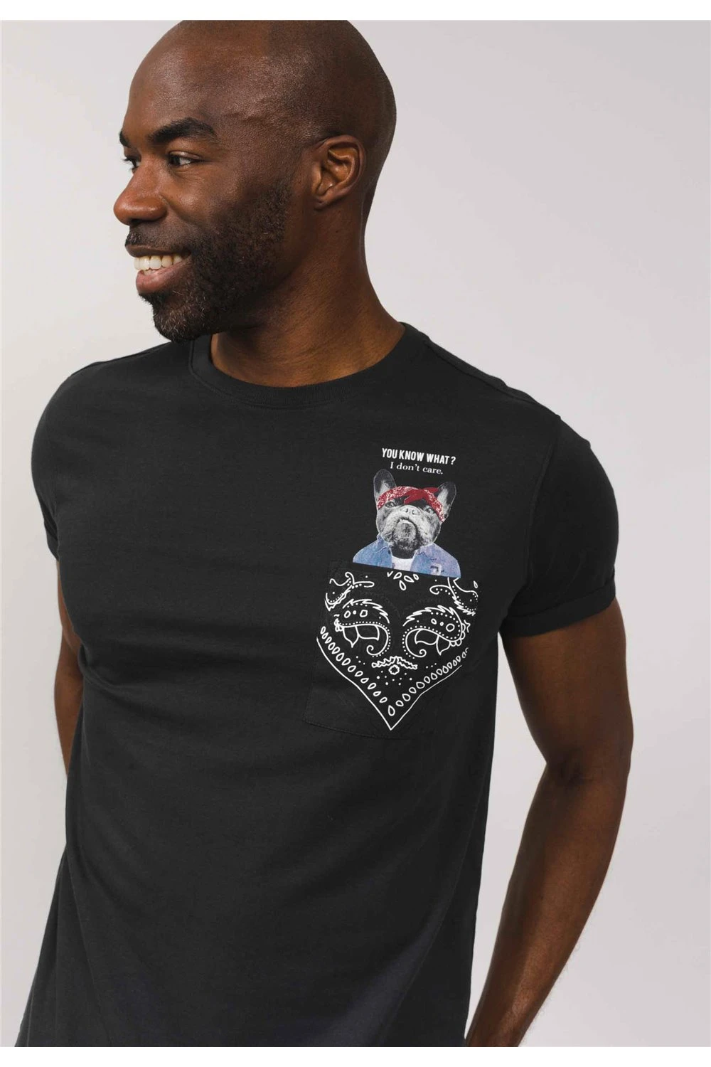 T-shirt uni pour homme en coton avec poche fantaisie imprimé.