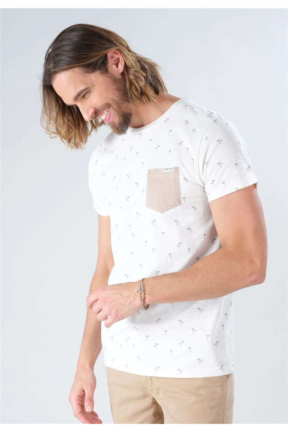 On ose le look summer à fond avec le t-shirt WAVES et son motif petits palmiers en all-over. Ce t-shirt à col rond pour homme possède une poche unie contrastante qui lui apporte une touche d’originalité.