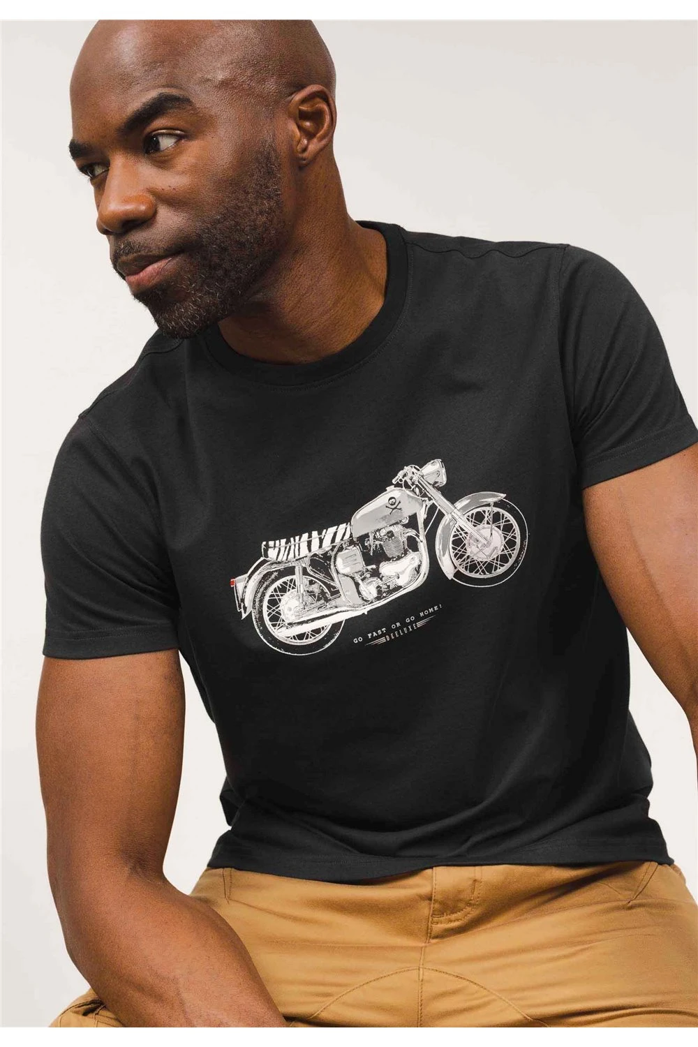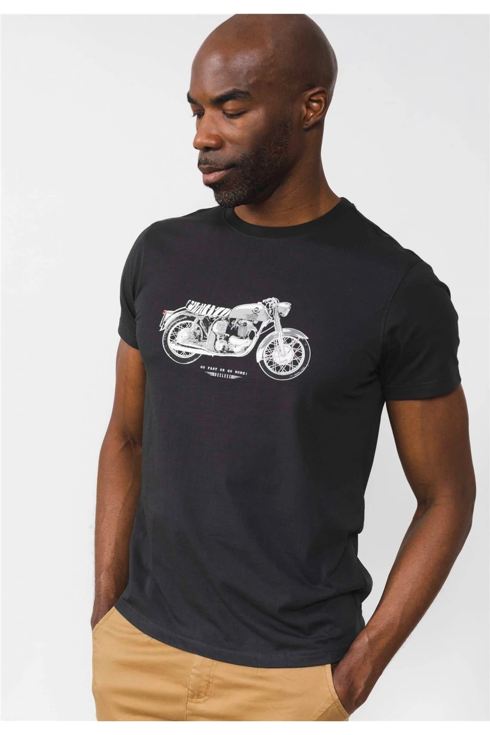 Il est grand temps de glisser dans votre commode ce t-shirt homme à col rond de caractère avec cette mythique moto vrombissante imprimée sur le buste ! Portez ce tee-shirt évocateur de liberté et de découverte en hommage à tous les bikeurs pour qui l’esprit FREEMIND demeure un leitmotiv au quotidien.
