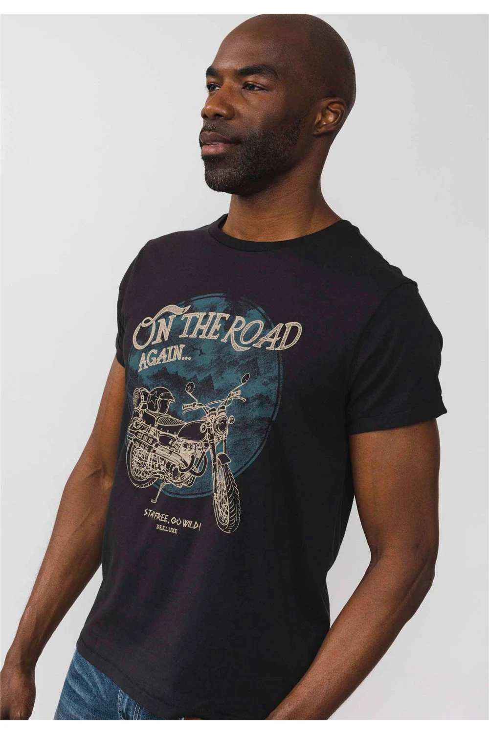 Une touche biker avec ce t-shirt homme ROADY en jersey 100% coton imprimé sur la face de cette moto prête à vous emmener à la découvertes des routes les plus lointaines. Ce tee-shirt est à placer près de vos jeans préférés dans votre armoire juste à coté d’une veste de la gamme Deeluxe pour une tenue complète.