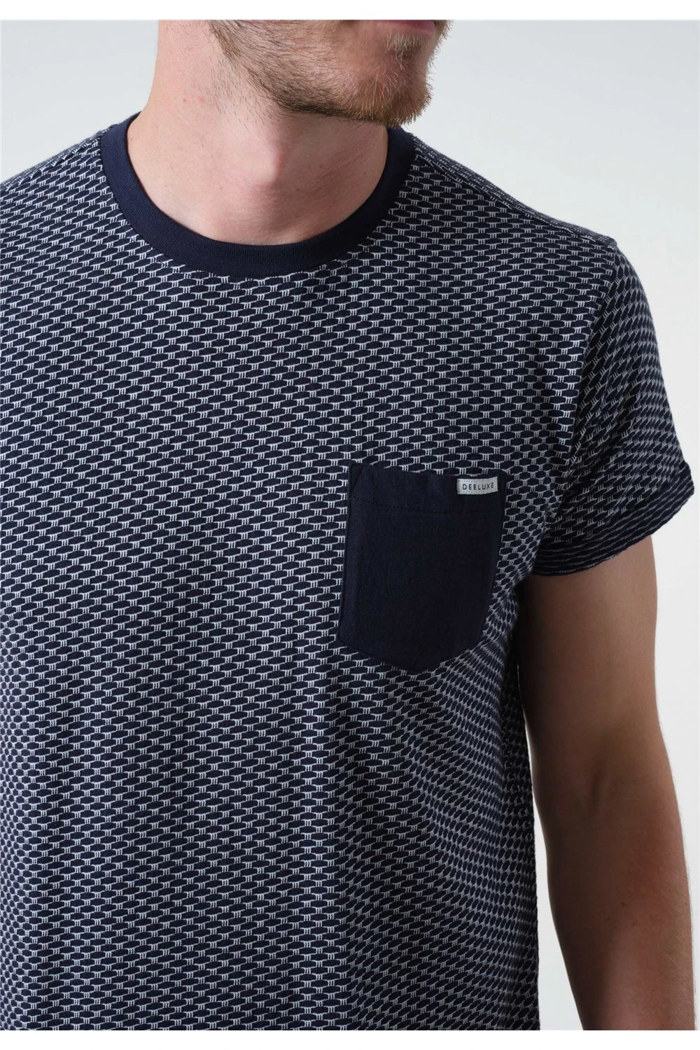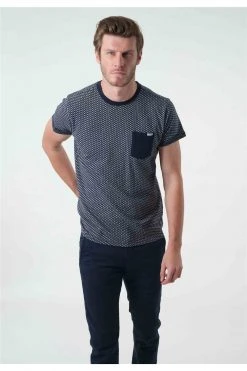 Adoptez le style de ce t-shirt à manches courtes EARSON jacquard 100% coton à la ville ou en weekend. Une finition de qualité avec son col renforcé et une note de raffienement avec cette poche poitrine plaquée bicolore. Avec quoi allez-vous décider de l’associer ? Un pantalon denim ou un bermuda de la gamme Deeluxe !