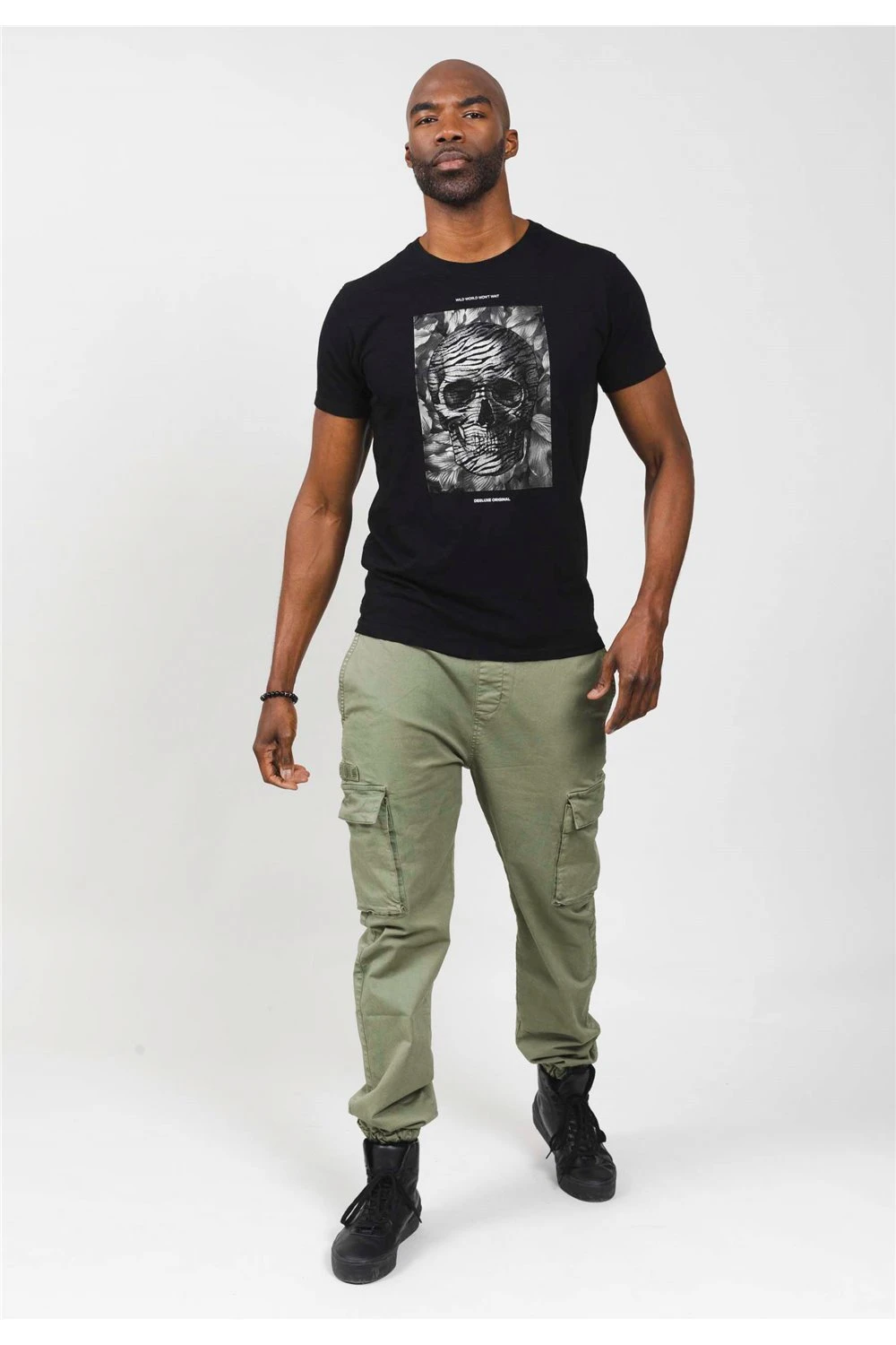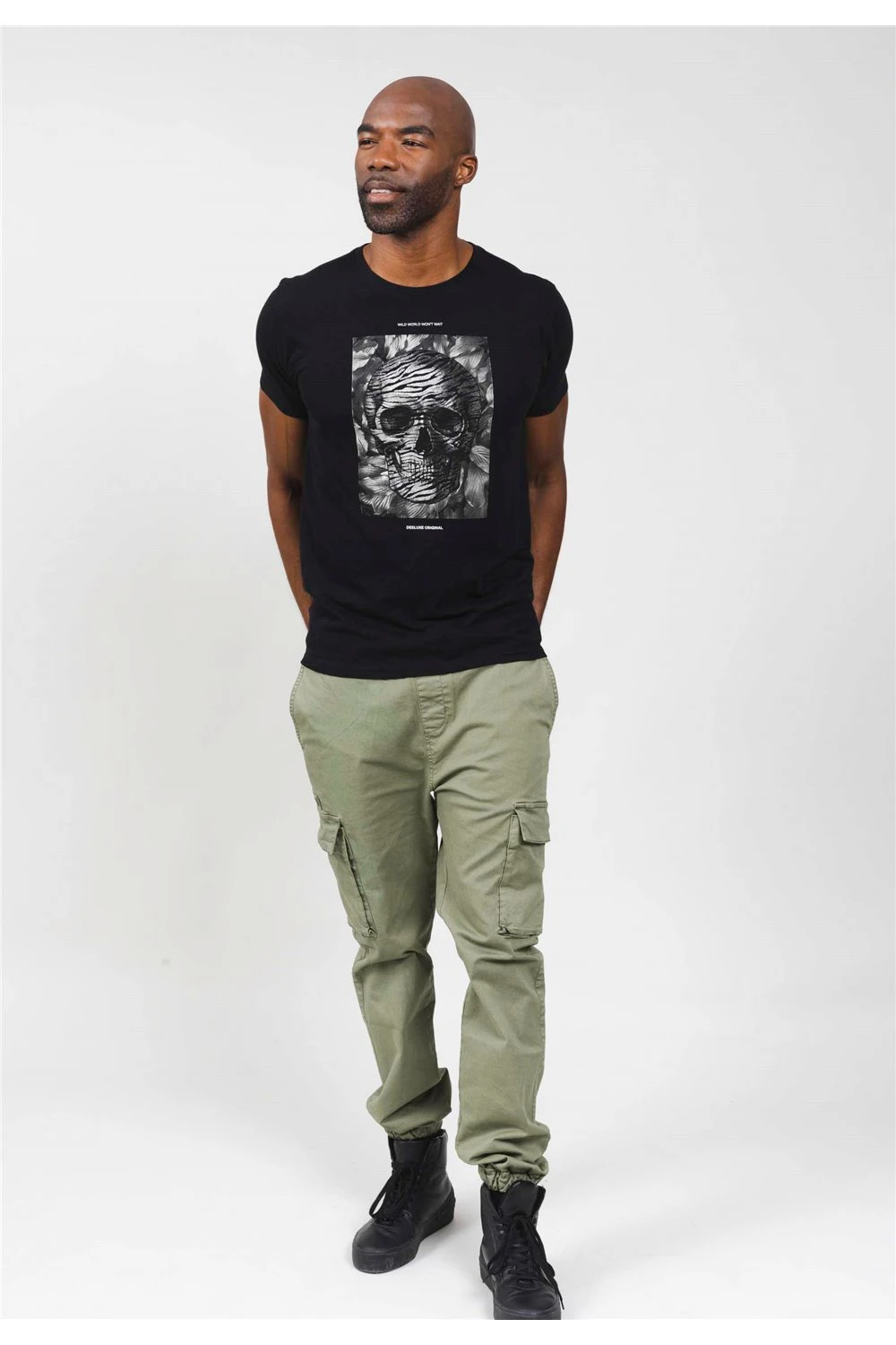 Le t-shirt homme imprimé d’une tête de mort entourée de brume répond à tous les styles ! Bikers, rockeurs et fans de métal apprécieront ce tee-shirt JACOB confectionné en jersey 100% coton avec des coutures surpiquées au niveau du col rond complêté par une bande de renfort bi-colore. Voilà une pièce qui se porte à volonté pour qui aime arborer fièrement un crane sur la poitrine.