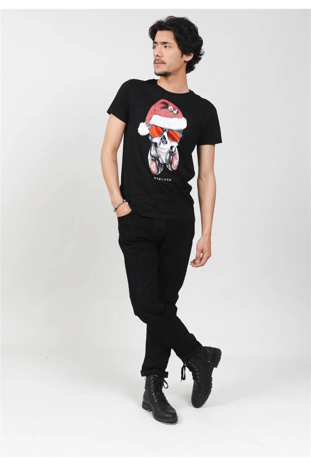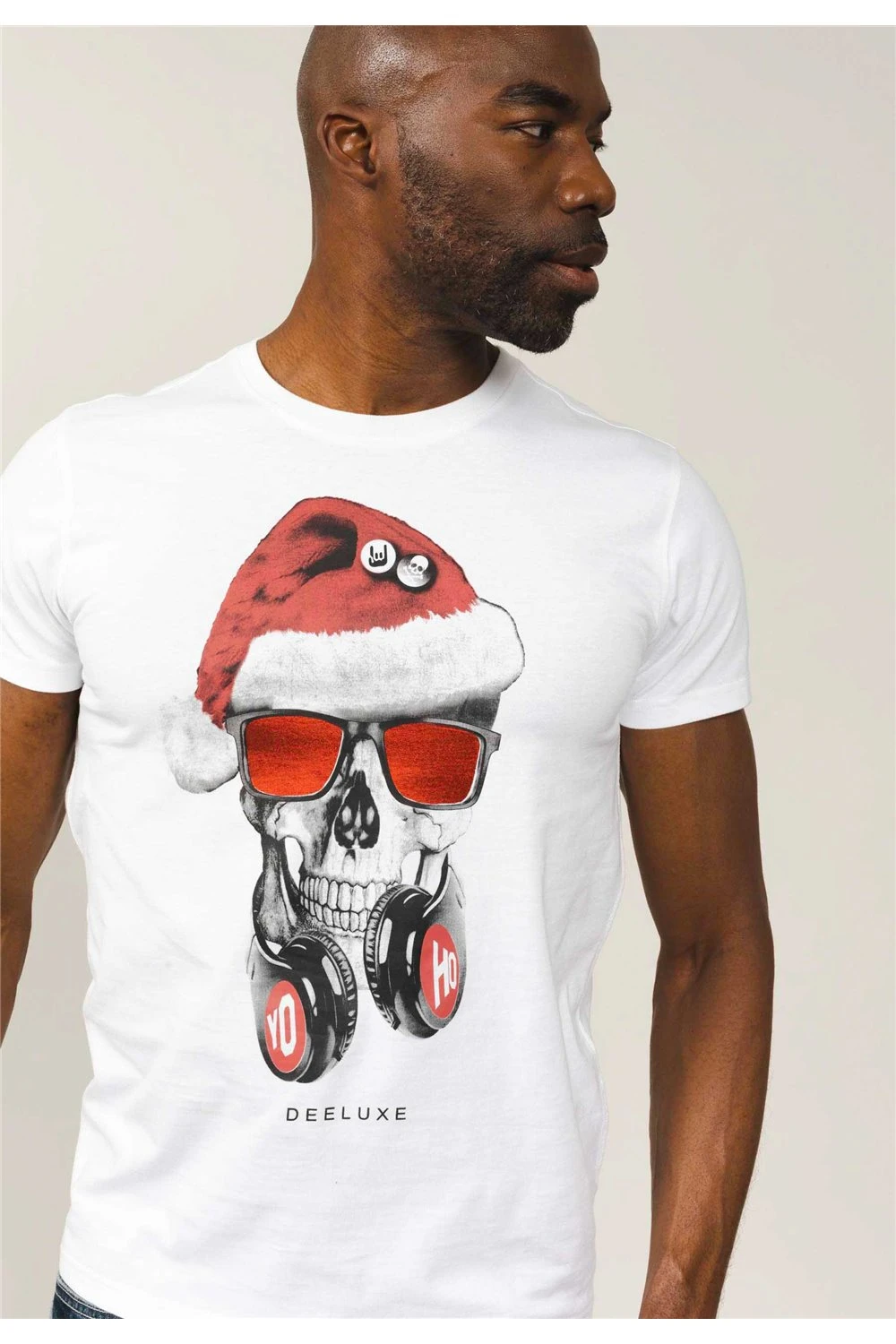 Ce t-shirt XMAS homme avec imprimé tête de mort père noel est un clien d’oeil pour tous les deejays et aficionados de musique qui sonnent ! Designé avec une coupe droite dans un tissu jersey 100% sa tenue est parfaite. Reste à choisir la couleur qui vous plaira le plus pour façonner votre look avec les autres pièces à shopper dans la collection Deeluxe.